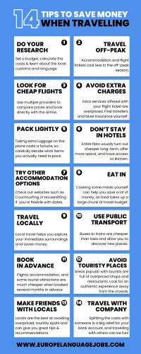 In this article, we will prove that you don’t have to be a millionaire to travel frequently. You can find savings in many different areas, if you know where to look. Luckily, you came to the right place - at Europe Language Jobs, we know exactly where.