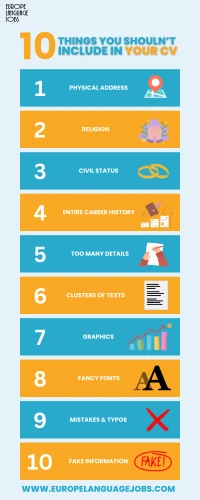 At Europe Language Jobs, we see many CVs - and many mistakes job seekers make. We decided to create a guide including all the things you shouldn’t include in your resume and answer all the above questions.